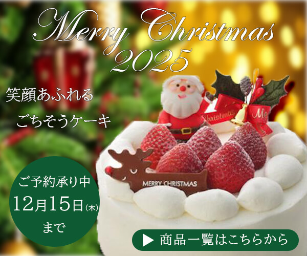 クリスマス感が出るようにカラーと背景とケーキの配置を工夫しました。 -